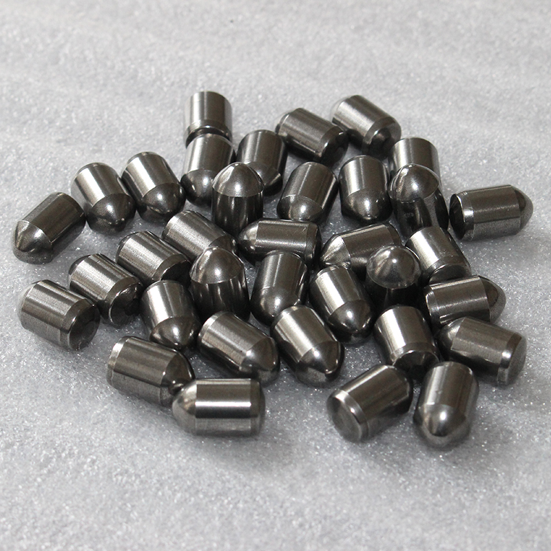 Конструкция: зубья имеют сферическую или близкую к сферической форму с закругленной головкой и могут крепиться к адаптеру бурового инструмента пайкой или механическим монтажом. Такая конструкция обеспечивает более равномерное распределение ударной силы, снижая концентрацию локальных напряжений. Кроме того, зубья могут вращаться во время работы, что позволяет регулировать износную поверхность и продлевает срок службы.