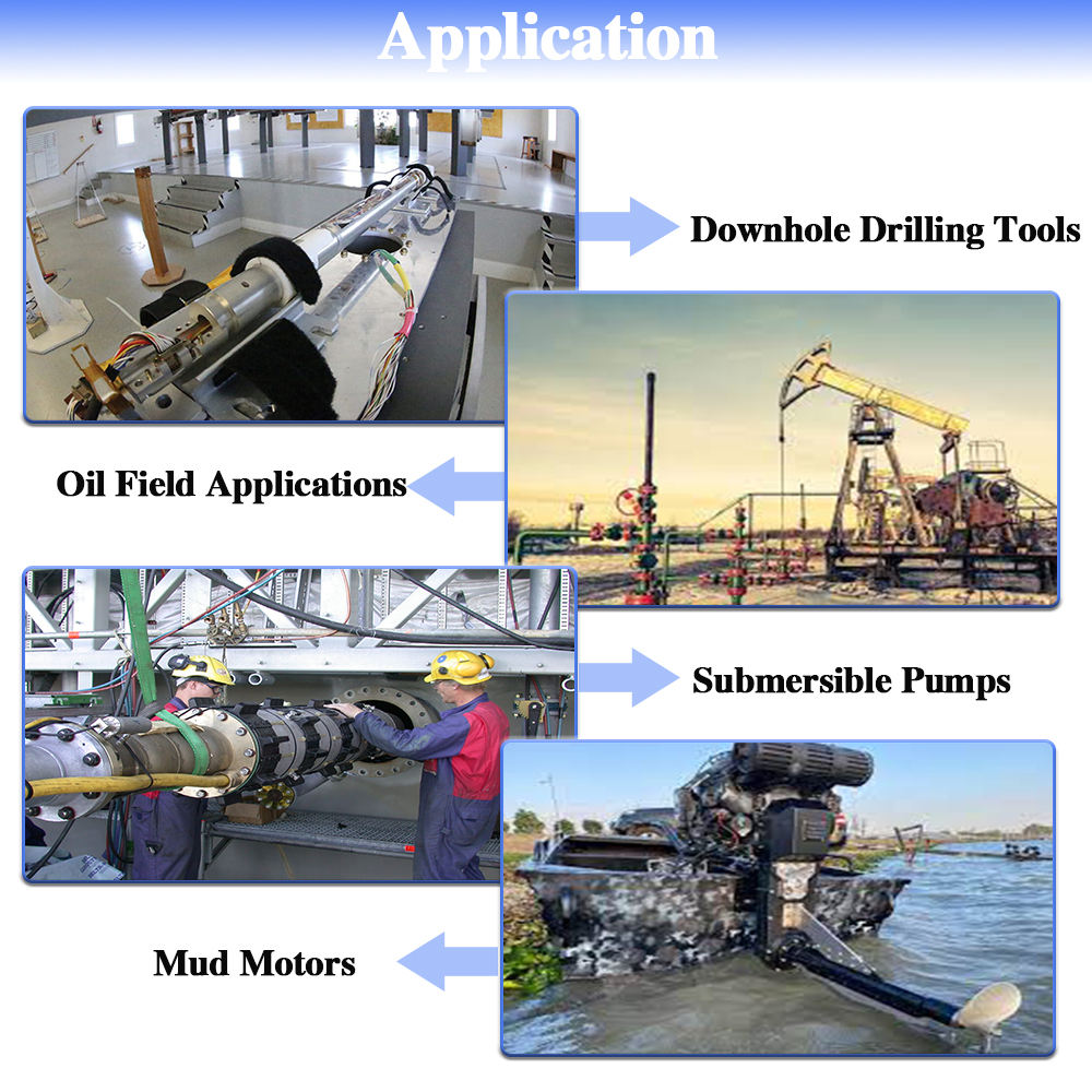 Области применения: скважинный электроинструмент, такой как винтовые двигатели, роторные направляющие и вертикальное бурение